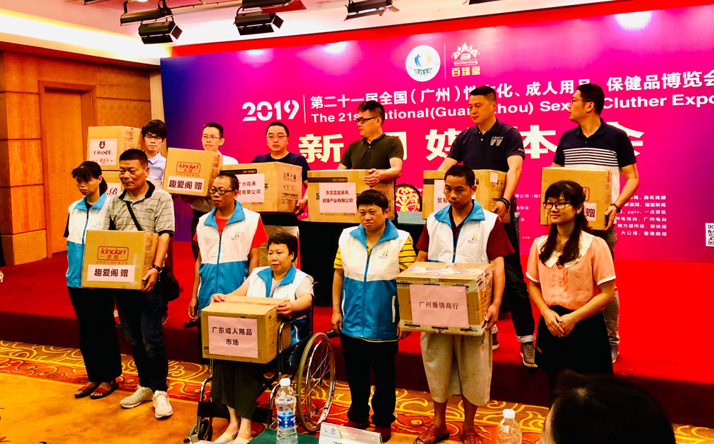 新聞媒體會上同時舉辦了“關愛殘疾人 真情送溫暖”活動,廣東成人用品市場、康祥實業、趣愛閣、筱禾貿易、斯漢德、Mr.B、雷霆暴風等企業和品牌商紛紛熱心資助,向殘疾人愛心捐贈一批適用于他們使用的成人用品及兩性健康用品,讓殘疾同胞滿足需求、釋放心靈、擁有與普通人一樣正常的快樂!
